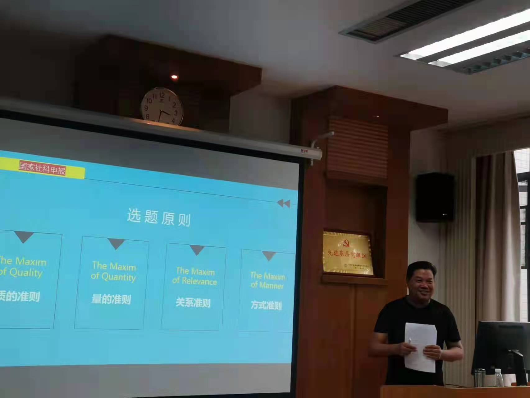 会上,陈金诗介绍了申报国家社会科学基金项目的经验,从项目申报书结构入手,结合自己申报过程,总结了写申请书前要做好的准备工作;项目申报书的内容摘要、项目选题、立项依据、文献综述、研究内容、研究目标等方面应注意事项。他重点强调了申报书应遵循数量准则、质量准则、关系准则和方式准则,鼓励大家及早着手准备,做到“积极申报不弃、屡败屡战不悔、良好心态不馁”。