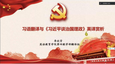为进一步加深同学们对习近平总书记治国理政思想和执政方略的理解,培养同学们的中英思维转化能力,11月3日晚上,太阳城集团线上举办了《习近平谈治国理政》英译本赏析“三进”专题讲座。本次讲座由第四教学部翻译组李欣芳老师主讲,2022级英语师范系员工参加了活动。