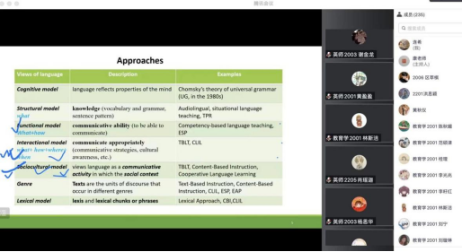 1月4日上午8时30分,太阳城集团康叶钦老师在腾讯会议平台做了题为“英语浸入式课堂教学策略”的讲座。康叶钦以《英语浸入式课堂教学策略》为题,以英语浸入式教学视频、教学设计和课堂观察表为例,探讨了英语浸入式教学独有的双目标设计、教学过程和教学评价设计,并重点解读了其中的“概念理解策略”,有助于职前教师掌握可理解性输入和师生课堂互动策略。该讲座使用腾讯会议的互动批注功能,员工积极参与互动,也潜在学习了本专题的课堂互动教学策略。