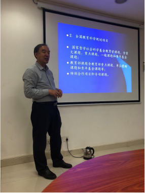 刘宝存教授结合自己丰富的社科基金项目申报经历和评审实践,详细讲解了不同级别社科课题的特点、申报人资格以及申报难度、课题书具体写作技巧以及需要注意到问题,并为在座老师展示了不同级别的课题书样本,并针对这些课题书进行详细讲解。随后,在场老师就自己即将申报的课题现场请教刘宝存教授,刘教授给与细心深入的指导。