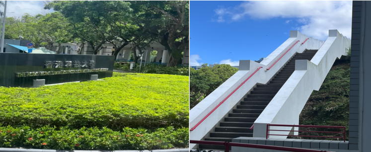 中午,同学们来到坐落在海边的香港科技大学享受午餐,品味丰富多样的美食。经过短暂的休整,同学们游览了香港科技大公司园内的标志性建筑,并对校园与海岸线结合的风景赞叹不已。
