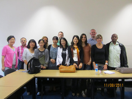教育公司的教师们学习的课程是 Contemporary British Language and Culture, 有两位教师负责:Hugh 和 Andrew,他们都具有较高的专业素养,非常负责,丝毫不因为是短期培训而有半丝敷衍。英国老师每天的选择的话题都跟文化有关:文化/国别成见,幽默,科技,政治,禁忌,家庭等以及跟它们相关的语言.确实,这其中牵涉到的背景,词汇等远不是在国内学了课程就能了解的。授课教师还特地根据中国教师的背景选讲的内容,语言例子既新鲜时兴,又生动丰富,具有相英当的代表性;在课堂外,他们还给大家开设了与课程相关的博客,上传了许多有关当代英语语言和文化的视频资料,并不断督促老师们利用课外时间参与博客,多看资料,多发言,多交流。在这个课程里,教育公司的老师们除了可以和英国的老师学习,还和班里来自欧洲各地甚至是世界各地的教师同行们交流。和他们的交流,让我们的教师们更正了一些旧有知识的误区,也看到了国际友人眼中的中国,从而更加感性更加直接地体会文化的多样性和跨文化交流的敏感性。通过这个课程使我们老师们感觉在国内对英国文化的了解还停留在非常表面和粗浅的阶段。