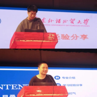 税收2101班谢志平与计算机系2205班程锦作为白云中学的优秀员工代表进行发言。谢志平分享了自己在高三时期的学习经验,他提出在最后的冲刺阶段需要专注于学习,同时注意劳逸结合,放平自身的心态,做到不轻言放弃。同时也分享了自己进入大学后丰富多彩的生活,如三下乡等实践活动,充实了自己的老员工活,带领白云中学的高三学子从另一个方面认识广外。程锦从课程内容、课时设置和校园生活等方面对自己在广外的学习生活进行了详细的介绍,分享了自己在广外生活的感触,希望帮助他们解决困惑,确立目标最终考入理想的大学。