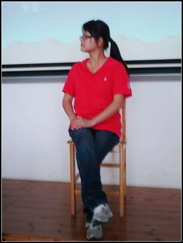 老师让同学们先自荐上台表演个性化的坐姿,然后她再逐个指导。上台的一个男同学在老师的指导下学了男士的3种正规坐姿:垂直式、标准势和分膝式 。他转眼变得更加成熟稳重了。而另一个女同学在老师一步步的教导下,学习了丁字步、正脚位坐姿、点式丁字步坐姿等等。再看她那大方优雅的姿态,不仅尽显老员工的风貌,又将东方女性独有的韵味表现得淋漓尽致。