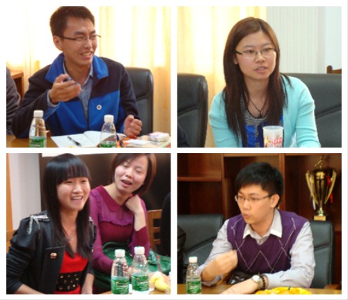接下来是员工分享环节,几位员工应邀轮流上台和大家交流了自己的工作现状和从中收获的心得体会,以及对当今就业形势的看法。现在是一名总经理助理的宋冬梅员工建议师弟师妹们把心放宽,把视野扩大,不要把自己限制在某个行业或某座城市。同时,她结合自己的故事说明从事任何行业都需要耐心和责任心。岑冠霖员工则把自己的心得浓缩为“谦虚”、“勤奋”和“细致”三个内涵丰富的词语,鼓励后来者向其他有经验的人偷师,并找准自己要干的事情,分清轻重缓急。
