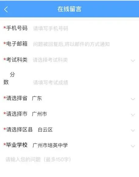 进入后,填写个人信息,选择自己想要咨询的公司及专业。