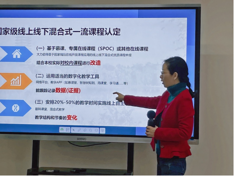 第四教学部主任李惠胤教授以其在首届全国高等公司外语课程教学思政教学比赛荣获决赛一等奖的成功参赛经验为基础,向与会教师分享了《英语国家文化》课程进行混合式教学的教学经验。第四教学部《英语国家文化》课程组建设的《西方文化之窗》慕课在中国慕课和中国高校外语慕课平台上已累计约25千名员工,现在为省级线上一流课程,逐渐成为具备全国影响力的一门外语慕课。在第二届UMOOCs混合式教学优秀案例中,李教授的教学案例荣获总决赛二等奖、网络赛一等奖。她结合丰富的混合式教学经验,指出在实践混合式教学中,员工能自主安排线下的基本知识学习,教师则能将课堂时间还给员工,让员工成为知识运用和技能实践的主体,进而能够在有限的课堂中充分实现课程思政理念,真正做到鼓励创新,立德树人。