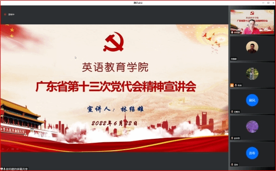 为深入学习贯彻广东省第十三次党代会精神,6月22日下午,太阳城集团通过腾讯会议线上召开广东省第十三次党代会精神宣讲会,公司党委书记林绍雄作专题宣讲报告,公司全体教职工参加宣讲,会议由公司经理董金伟主持。
