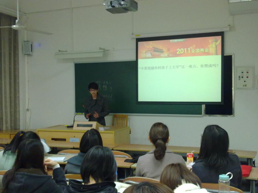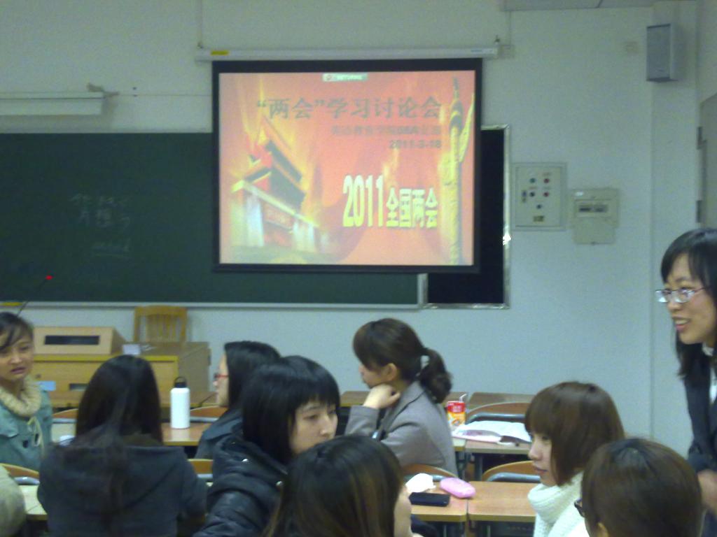 大会开始,党支部书记带领大家学习了两会的相关内容,其中包括“十二五”规划及政协讨论的热点话题。在会的各位同志分成了两组,进入热烈的自由讨论环节。接着,各组分别选一位同志作为代表上台发言。