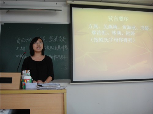 首先是方燕等七个党员发展对象的轮流发言。他们首先宣读了详细的个人信息,然后他们就个人理解谈了谈对低碳生活的深刻感受。几位同志从自己身边的常见现象,谈到最近火热的地球一小时,环协的水果贺卡等等活动,真诚地表明自己坚持低碳的生活方式,慷慨激昂地呼吁大家行动起来,做生活的有心人,并坚持下去。这一番番激情澎湃的陈词博得了众人的阵阵掌声和喝彩。