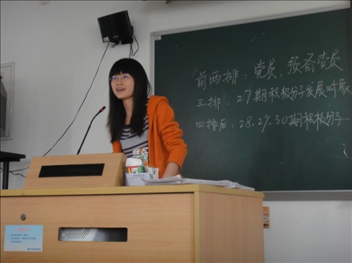 2010年4月29日下午3点30分,英教公司08党支部在教学楼G栋206举行了第27期发展党员的表决大会。出席本次会议的有公司辅导员助理陈老师,08,09的党员和预备党员,第27,28,29期的积极分子。08党支部组织委员杨燕媚担任此次大会的主持人。在简单介绍了大会的流程之后,主持人宣布大会正式开始。