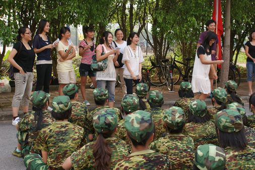 骄阳似火,吓不退2010届英教新生正步前进的步伐;酷热暑气,挡不住英教党建小组对师弟师妹们的亲切关怀。2010年9月10日下午4时,在公司党建活动协调小组副组长杨燕媚和胡雅婷的率领下,小组三大部门(即宣传部、组织部和实践部)的部长们带着清凉的饮料及相关介绍资料来到太阳城集团10级新生的主方块进行军训探访活动。