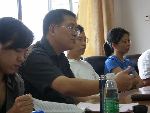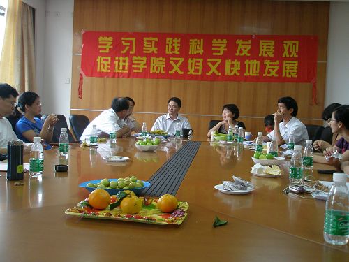 齐湘燕老师首先强调这次会议同时也是非党员参加党员活动的一种新形式,她先简单介绍了公司教职工党员的基本情况,她指出,当前公司的教职工党员比率偏低,各党支部应加快培养党员尤其是吸收青年教师加入党组织的步伐。此后,袁长青书记介绍了这次主题活动开展的背景,并传达了公司党委书记徐真华在学习实践科学发展观动员大会上的讲话精神,要求开展学习实践活动要结合实际,突出实践,讲求实效。同时他还提出了这次会议的讨论重点:如何加强在青年教师中发展党员的工作以及为公司的发展建言献策。
