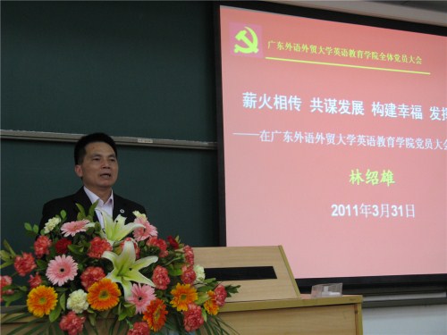 随后,公司党委书记林绍雄向大会作了题为《薪火相传,共谋发展,构建幸福 ,发挥作用》的工作报告。报告共分为三个部分,分别就公司党委过去三年的工作中所取得的成绩进行了回顾,对过去三年获得的经验与存在的不足进行了分析,并对今后几年的工作提出了若干设想和部署。过去的三年间,公司党委围绕公司和公司的中心任务,积极抓好公司的政治、思想、组织、作风、制度、文化等方面建设,充分发挥党组织的政治核心作用和党员的先锋模范作用,为公司的和谐、科学发展营造了良好的氛围,提供了强有力的思想政治保障。今后几年,公司党委将继续加强党组织和党员队伍建设,实施固本强基工程;加强领导班子和干部队伍建设,实施素质提升工程;加强规章制度建设,实施规范强化工程;加强宣传思想政治建设,实施灵魂铸造工程;加强公司精神家园建设,实施幸福构建工程;加强群众组织建设,实施人心凝聚工程,在推动公司科学发展、和谐幸福的历史进程中发挥更加重要的作用。大会号召全院各级党组织和师生特别是共产党员继续解放思想、坚定信心、与时俱进、开拓创新、振奋精神、创先争优,共同为实现公司、公司“十二五”发展目标和“十年腾飞”而努力奋斗!林绍雄同志的工作报告博得了与会党员同志的阵阵掌声,并在大家的热烈掌声中获得通过。