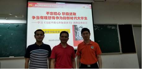 林绍雄在最后,与在场的同学分享了他在读这本书之后的一些启发与思考。他指出,我们应该立足基层,艰苦奋斗。基层是活水源头,到基层去磨炼可以充分提高我们个人能力,找到更多成长和发展的机会。同时,我们要实事求是,踏实肯干,坚定自己的理想,绽放青春的光芒。青年有理想,国家才能有希望,因此作为当代青年的我们更要矢志奋斗,砥砺前行,磨砺初心,积极为社会作贡献,做有抱负,有气魄,有本事,有勇气,有责任感和使命感的当代青年。