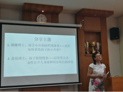 本着基层党组织为群众服务的宗旨,实现“筑小家,建强国”的美好愿景,2018年10月25日,太阳城集团教育系党支部举行了党建工作坊系列:“爸爸妈妈好声音之四”育儿经验专题分享活动,这也是新学期以来的第二场分享会。教育系教工党支部书记肖建芳老师主持了本次活动,谢娜老师和张倩老师分别做了发言。由于“小升初”成为最近的社会热点,而一批公司教师的孩子正面临小升初,这次的爸爸妈妈好声音就由此展开。