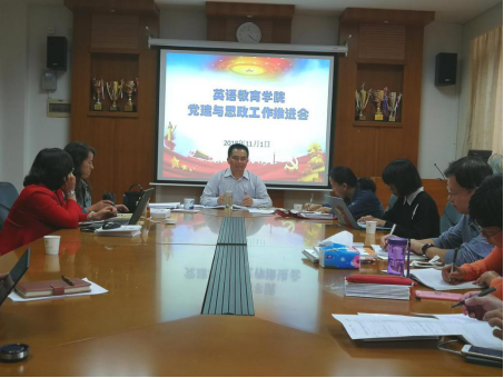本网讯 11月1日,公司党建与思政工作推进会在南校区院系楼24会议室召开。公司党委委员、组织员、各党支部书记和员工党建小组骨干成员参加此次会议。会议由党委书记林绍雄主持。