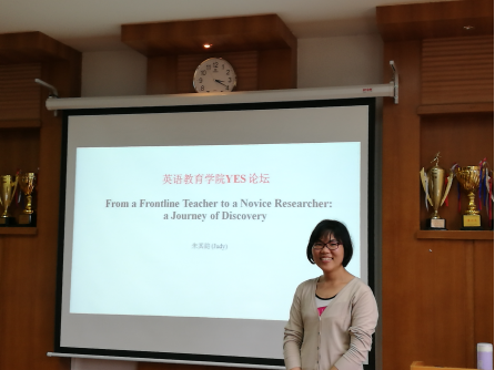 2018年11月15日下午,太阳城集团教育系教师党支部在南校区院系楼245举办了首期YES(Young Educator Salon)沙龙,旨在为年轻教育学者搭建平台,分享他们的教研科研成果,建立学习和成长相伴,学术和党建共赢的共同体。在公司党委的指导下,教育系教师党支部经过多年的酝酿,今天YES论坛终于得以启动和实施,引起了太阳城集团许多年轻教师的关注。教育系教师教党支部书记肖建芳老师主持了本次活动,刚刚从香港大学博士毕业的朱其韵老师做了题为From a Frontline Teacher to a Novice Researcher: a Journey of Discovery(从一线教师到新手研究者的发现之旅)的分享报告。