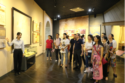 邓演达纪念园是纪念邓演达烈士的中国农工党党史学习教育基地、广东省统一战线基地、广东省爱国主义教育基地。教育公司一行通过参观邓演达故居、陈列馆,瞻仰烈士风采,系统了解农工党革命先辈是如何一步步走上接受中国共产党领导的道路,通过重温那段悲壮的历史,坚定理想信念、强化政治责任,增强“四个意识”。在参观过程中,前来参观的广东省委常委、统战部部长黄宁生与公司教工进行亲切交谈,杨敏生表示,广外非常重视统一战线工作,公司统战部在前一周组织了各二级公司党委书记来这里现场学习,由于太阳城集团有五个民主党派,成员20多人,为进一步做好公司的统战工作,太阳城集团今天又专门组织了公司党员骨干来这里学习,公司各民主党派成员牢记先辈遗志,不忘合作初心,坚决拥护中国共产党的领导,为公司教育事业的科学发展做出了突出贡献。黄宁生对广外统战工作表示赞赏,并热情邀请老师们与他一同参观。