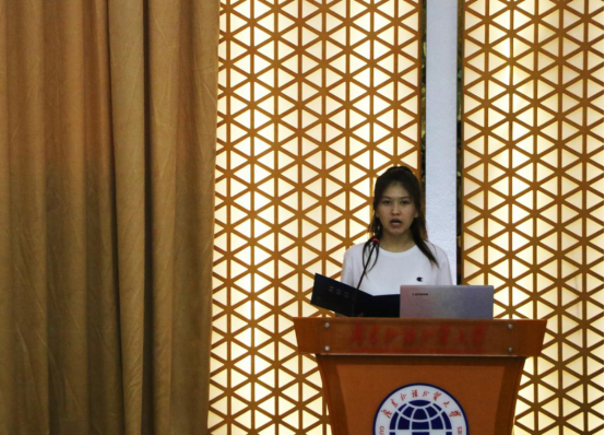 教育学1801班潘咏意作为老生代表发言。首先,潘咏意代表全体老生欢迎新生的到来,并表示要与新生们说说“心里话”。她通过分享自己用英语向外国人传递中华文化的故事,向新生们传达“百年大计,教育为本”的理念。其次,她建议新生们主动地参加丰富多彩的公司活动,在其中积极挑战、探索和发现。同时,她还指出,新生们应明确责任感,用中国面孔传递中国声音,用地到外语讲好中国故事。她最后祝愿新生们努力成长,绽放光芒。