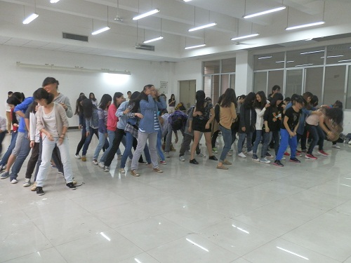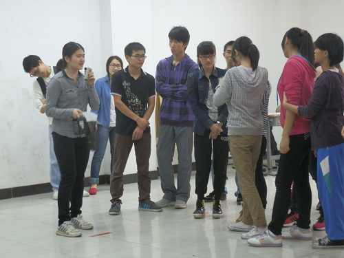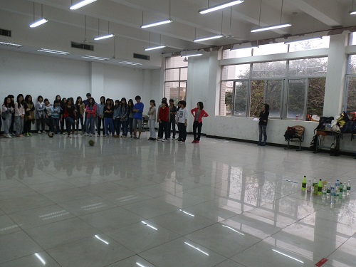 在体育部部长黄鹭栖简单介绍了一下玩法之后,各组排成列队,开始了第一个游戏。苗条的女同学个个身轻如燕,一会儿就完成了一个来回,所以在女同胞为多的英教,这个游戏并没有使各组拉开较大差距。