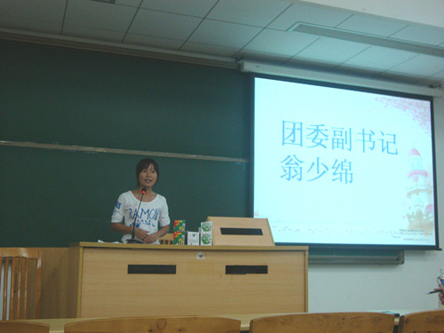 会上,团委副书记翁少绵首先发表讲话。讲话一开始,她就向我们情真意切地介绍了团学的宗旨,即“相亲相爱一家人,团结理念永传承”。翁少绵同学列举了生活中许多具体生动的小故事,将团学的理念蕴于其中,让在场的团学成员们获益匪浅。