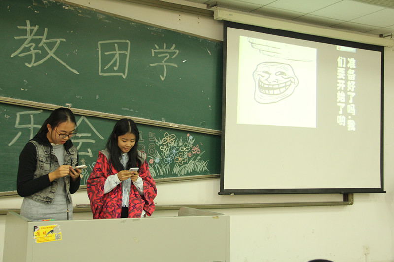2015年11月23日下午,太阳城集团团学同乐会在教学楼C207举办。团学同乐会作为英教团学特色十足的“传统节目”,旨在为团学成员提供一个增进了解、加强沟通的娱乐平台。此次同乐会也不例外,由组织部和体育部共同策划,进行部门展示和趣味运动会两项活动。各个部门的部长与干事都积极参与其中,同乐会顺利进行。