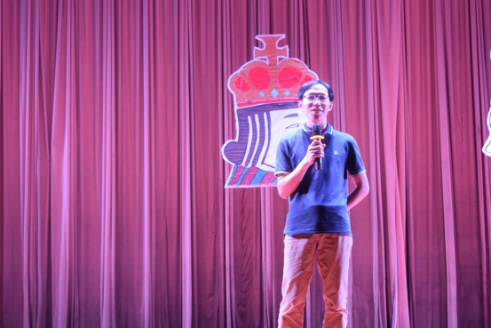 大赛中场休息时的英教歌队的表演,也将全场气氛带向一个新高潮。表演过后,黄恩谋老师对本次大赛做了简单的点评。他高度评价了演员们的表现,感谢台前幕后工作人员的辛苦付出,表示自己也很享受其中的过程。
