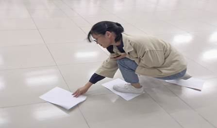 在两个热身小游戏过后,趣味运动会正式拉开帷幕。首先进行的运动项目是“摸石过河”。在这个游戏中,每组拥有三张卡纸,通过交互挪动这三张卡纸完成游戏。在游戏过程中,脚不可以落到卡纸以外的地方,否则计时加5秒。游戏一开始,各组队员就立刻投入状态,迅速交互卡纸,挪动脚步,队伍另一端的队员则焦急张望,等待着交接。现场的欢呼声此起彼伏,将气氛推向高潮。