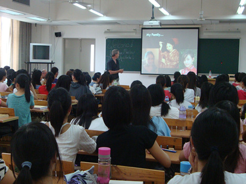 5月16日下午,公司在教学楼E404接连举办了两场盛大讲座,第一场是由美国南卡罗来纳大学语言学教授、美国南卡罗来纳TESOL教育学会主席DAVID W.MARLOW主讲的题为“Extrapolating Success at a U.S. University(在美国大学创造成功)”的讲座,第二场则是由公司05级毕业生——分别来自宾夕法尼亚大学和宾州州立大学的刘晔婷和钟丹分享自己的美国学习经历分享。公司教育系主任柯晓玲老师担任主持,公司众多学子前来聆听。