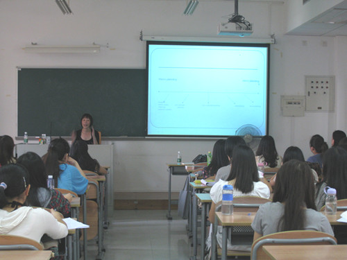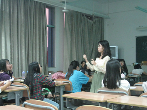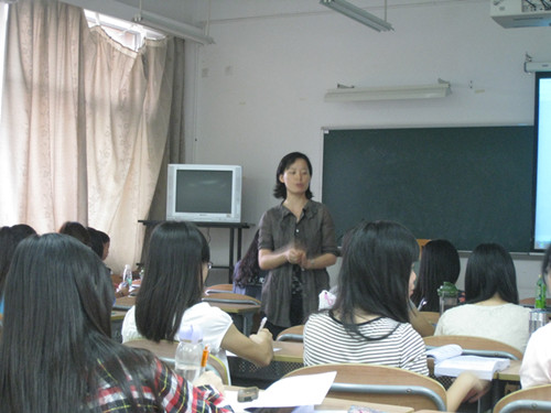 随后,柯晓玲老师进行了说课和笔试情况的有关介绍。柯老师紧接着周老师的讲解对MT做了进一步的阐述,以自身当过老师说课评委的经历对参赛者在说课中应注意的事项提出了建议,还对选手参赛时的仪表问题发表了看法,使同学们得以一窥评委的标准与眼光。
