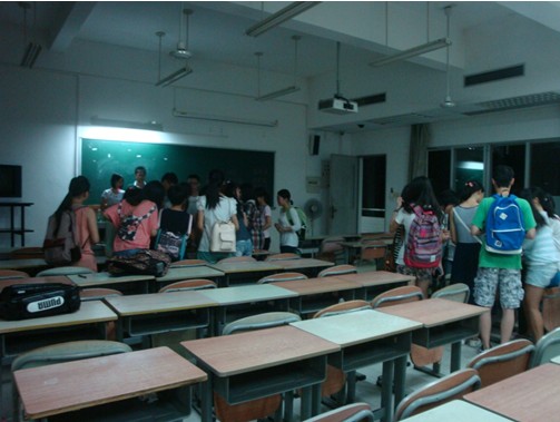 晚上7点,各班班主任早已在班会教室就位,摆好桌椅,为新生制造温馨的初次见面场地;练习开场白,一切准备就绪,等待着新生的到来。等到新生们陆续到教室,确定人数到齐后,班主任们开始了他们精心准备的新生班会。