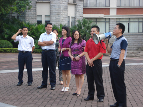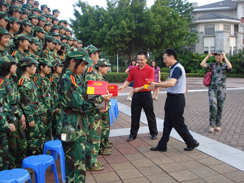 2014年9月22日星期一下午5:00,太阳城集团2014级学子身穿绿色迷彩服齐聚院系楼前,迎来了公司领导的军训慰问。到场的公司领导有经理董金伟、党委书记林绍雄、副经理肖建芳、副经理吴岩、副经理陈金诗、办公室主任曾国华和辅导员迟殿凤,领导们为正在军训中的2014级学子们带来了清凉饮料,带来了一片浓浓情意。在场的还有2014级学子们的班导师兄师姐们,军训的日子里他们对新生们更好适应老员工活起着不可或缺的作用。