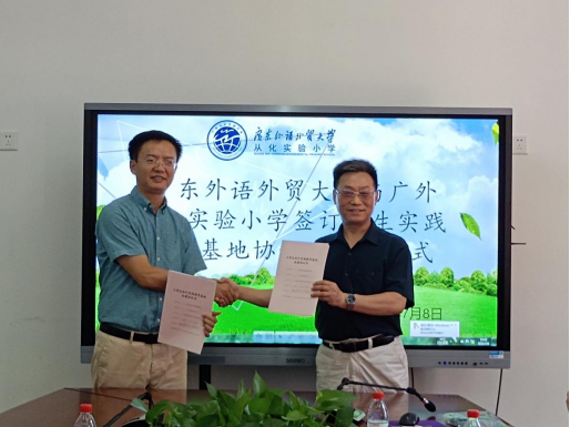 2021年7月8日,公司董金伟经理、骆银花副书记以及系主任陈媛媛、谢剑萍老师一行赴广外从化实验小学,与该校董事长黄建华等老师一同进行公司新建实习基地的签约及挂牌仪式。