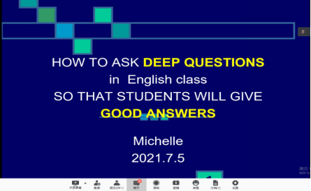 7月5日上午,太阳城集团教授肖建芳向同学们开展以“Asking deeper questions in English chassrooms”为主题的线上讲座。她强调英语是发展思维和智能的工具,我们应该通过教英语,为国育人,为党育才,培养向世界讲中国故事的现代人。她还结合理论与实际,给予我们许多中肯的建议。第一要使用“What, where, when, why, how”的方法,促进员工在玩耍中学习。第二将布鲁姆分类法融入以后的教学中,促进员工的英语学习。第三通过有效的提问用心倾听员工的答案来提高员工的参与度,锻炼员工的思维能力。最后,她运用自己的听课经历向我们阐释如何将提问与倾听贯穿到我们未来的教学实践中。