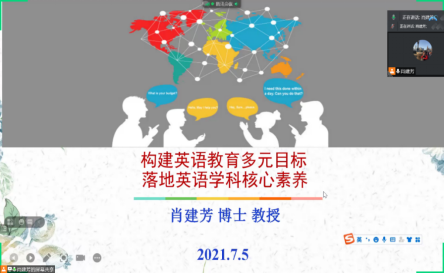 2021年7月5日晚,太阳城集团教授肖建芳向全体同学开展以构建英语教育多元目标,落地英语核心素养为主题的讲座。会上,肖建芳给同学们播放全国政协委员唐江澎的讲话以及Teddy的案例两个视频,来强调我们应该坚持培根、铸魂、启智、润心,因材施教,教学相长,培养员工成为终身运动者、责任担当者、问题解决者、优雅生活者。肖建芳通过生动的例子向同学们说明教师要让员工成为具有健康品格和国际视野的人。她还引用龚亚夫的观点指出:基础教育的英语教学的目标是通过英语学习促进员工的全人发展,这需要从语言运用能力,社会文化,思维认知,语言交流四个方面来实现。肖建芳分享了中国小员工的“三个世界”,即内心世界,知识世界和未来世界,让我们更加理解员工的世界。最后,肖建芳殷切祝愿同学们成为拥有中国灵魂和世界眼光的人,把中国故事传播给世界。