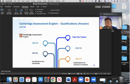 2021年7月4日晚,剑桥大学DELTA及CETLA教师培训师万威向公司同学开展以在国际化视角下外语教师的专业发展为主题的线上讲座。万威首先向同学们讲述了自己从一个没有丰富经验的初学者最终成为一名英语语言教育者的过程。此外,他分享了三个原则:一是将感觉和事实结合;二是提前做好准备;三是定下一个目标并为之努力。接着,万威细致地从计划课程的安排、管理课堂、评估学习情况、养成职业责任感、了解教育政策等多个方面全方位的介绍了一位外语教师所需要的各项技能。最后,万威通过一张求学流程图清晰地说明,通过理论实践相结合,注重反馈,反思和交流,目标明确,坚信成功,坚持不懈以及身心健康方面的努力,可以不断完善自己。在后续的答疑环节,万威耐心细致地回答同学们的问题,并鼓励同学们不断追求学业,抓住学习机会深造自己。