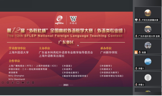 受疫情影响,本次大赛采取线上比赛、线上线下混合评审的评比形式,大赛分为英语专业组和商务英语专业组两个组别。本次比赛共分三个环节,包括30分钟限时现场备课,15分钟说课视频录制及专家评审即时问答。来自广东多所高校的教师参加了此次比赛,经过激烈的角逐,比赛最终决出英语专业组和商务英语专业组的特等奖、一等奖、二等奖、三等奖。