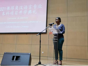 杜小丛大使热情洋溢的讲话,充分肯定汉语言专业本科项目的成功开办是中佛人文交流进程中的又一特殊美好时刻。从2015年佛得角大学孔子公司挂牌,杜小丛大使亲眼见证了佛得角汉语教育的快速发展。他说,汉语言专业的开办为佛得角自主培养汉语教师提供了坚实的平台,必将长远惠及中佛友好事业。他寄语首届新生珍惜学习机会,全力以赴学好专业知识,通过掌握中文拓展认识大千世界的视野,为中佛友好事业作出贡献。佛得角国务秘书尤丽迪丝指出汉语学习对佛得角的重要性,并对中国政府与中国高校一直以来给佛得角的学子们提供的机会表示感谢。她相信佛得角大学汉语言专业的开设,必将对于佛得角的学子们增强全球竞争力发挥重要作用。