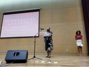 教师代表阮祚崟以他教授的两个员工汉语学习经历为例,勉励汉语言专业的新生们:汉语言专业是一个全新的专业,要敢于抓住机会,追逐自己的梦想,实现人生抱负。“中国在我的心里”,新生代表龙勇生表达了所有汉语言专业新生的感受。作为最早的孔公司学员对汉语的热爱让他继续报读汉语言专业,提高自己,更好的传播中国语言文化。
