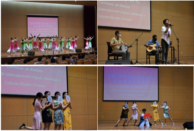 典礼在开场舞《青鸟》中缓缓拉开帷幕。佛中友协舞者生动演绎传递佳音使者的青鸟破壳、振翅、高飞,表达对汉语言专业首届员工的美好祝福和期许。音乐公司的演奏让观众沉醉于浪漫嗓音与动人旋律之中。孔子学院教师的舞蹈《南屏晚钟》尽显东方风韵,《时候》折扇翻飞、玉袖生风,流水行云。