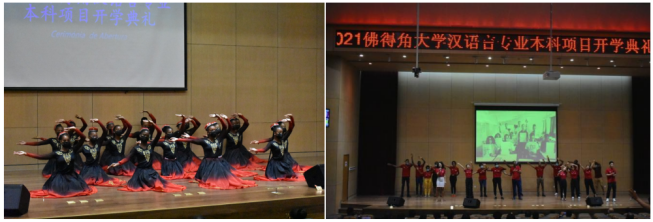 典礼接近尾声,佛中友协一支融合了新疆舞与唢呐,既青春洋溢又振奋人心的《青春舞曲》为致辞环节画上圆满的句号。典礼在佛大孔院全体师生《瀚宇之花盛开的地方》的歌声中温馨落幕。