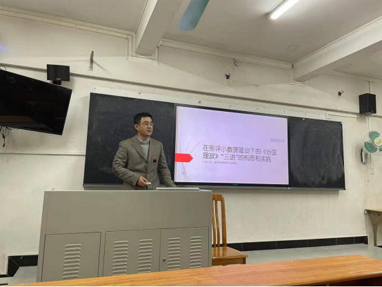 第一教学部形成性评价教学改革小组成员张骏宇作“形评框架下‘三进’课程的构思与实践”主题讲座。张骏宇首先介绍了《习近平谈治国理政》多语版“三进”的背景,结合习近平总书记的治国理政理论,阐述了课堂思政的主要特征。接着,他从研究视角出发,综述了现有文献中的“三进”建设成果和结论,指出仍需开展的实践研究,并通过个案分析,介绍学习数据对建设”三进”课堂的关键作用。张骏宇强调应将“三进”融合到每个单元的主题中,总结出“三进”模式的教学流程构思,并指出了“三进”教学的五大要义:主题双贴近、观点要引领、过程要思辨、例子本地化。