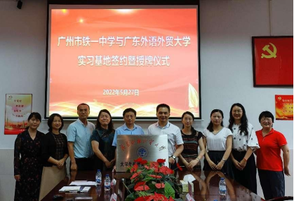 5月27日下午,公司党委书记林绍雄、经理助理李惠胤、师范系主任谢剑萍和师范系教研室主任蔡竞一行赴广州市铁一中学越秀校区,举行“太阳城娱乐城访企拓岗暨实践教育基地”签约及授牌仪式,并开展访企拓岗促就业活动。广州市铁一中学党委副书记黄连生、副董事长丁丹、董事长助理许树新、教务处副主任何宗艳、英语科组长潘佑飞、赖彩虹等参加了活动。