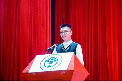 2020级在校生代表何梓锌发言,代表全体英教学子向毕业生送上真挚的祝福,希望师兄师姐们能把自己这四年以来的英教之旅作为自己前行的动力和底气,一路披荆斩棘、乘风破浪,成为更好的自己,在不断前行的过程中,能够心怀广外、心系英教,关心公司与公司的未来发展,为我们深爱的广外与英教、为国家和社会贡献出自己的力量。