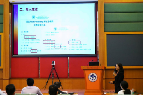 吕琳琼开门见山,从“何为文化”、“文化何以‘成’何以‘就’”的核心问题入手,阐释了公司以“立德树人”、“明德尚行”的价值观引领的专业赛事建设。吕老师以图文并茂的方式,展示了赛事开展17年以来在组织、开展上形成的“跨界合作”、“实践反思”、“锐意创新、与时俱进”的特点,说明“师王”达成了“以赛促学、以赛促教、以赛铸魂、以赛建业”的成效,推动了《英语教学法》、《教师专业发展》、《专业见习》等一系列赛事辐射课程的建设,培育了一批又一批德才兼备的从事英语教育的工作者,铸就了“育卓越、“铸师魂”的英教专业文化。吕老师对“师王”小切口、深分析的陈述获得在场评委一致好评。
