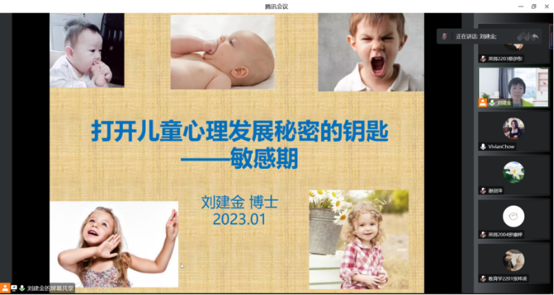 6日上午,公司副教授刘建金向2022级员工开展以“打开儿童心理发展秘密的钥匙——敏感期”为主题的讲座。刘建金为同学们介绍了儿童心理发展的敏感期,解读了0-6岁儿童在敏感期的行为和思想,并提出了与儿童互动的原则和技巧。她强调我们要尊重并且理解孩子,细心发现,积极引导,享受与儿童互动的乐趣。