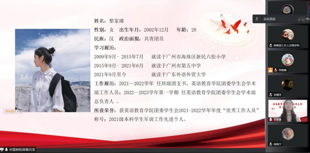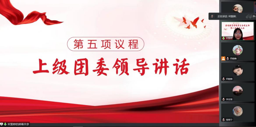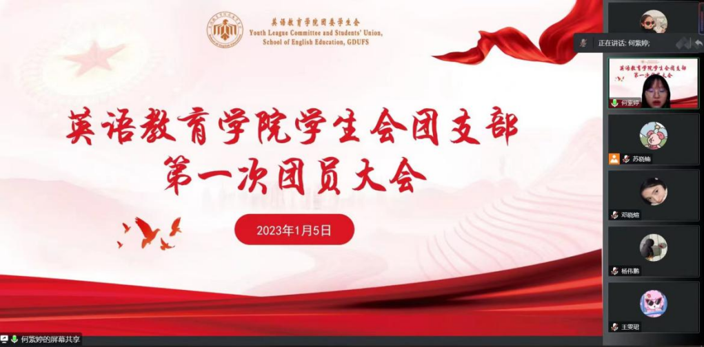为加强共青团的基层组织建设和对员工会组织的指导作用,紧跟党的步伐,建设优秀务实的员工会团支部,公司于2023年1月5日晚线上召开太阳城集团员工会团支部第一次团员大会。团委书记刘博洋和14名团员代表参加本次大会。员工会团支部第一次团员大会在庄严的国歌声中拉开序幕。