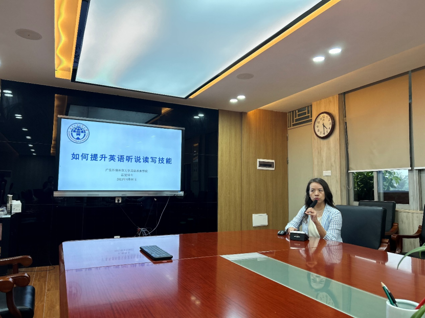中文公司吴俊峰副书记为与会教职工介绍了广外专业优势、办学特色、毕业生就业质量等情况,国际公司黄敏娟做了出国留学项目的介绍。最后英教公司江健博士做了题为“英语听说读写能力提升”的讲座。本次活动增强了双方的了解,建立了制度化交流机制,并为中学师生提供了专业讲座,为老员工创造了学习实践机会并增强了公司的影响力。