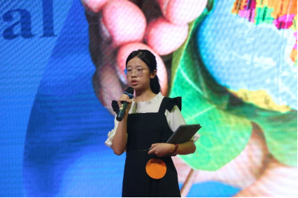 选手谭淇桐介绍了中国通过推动构建人类命运共同体,把握时代潮流方向,与其他国家共同努力致力于解决气候变化所带来的挑战。她在演讲中提出我们只有一个地球,只有全球携手共进方能创造美好未来。